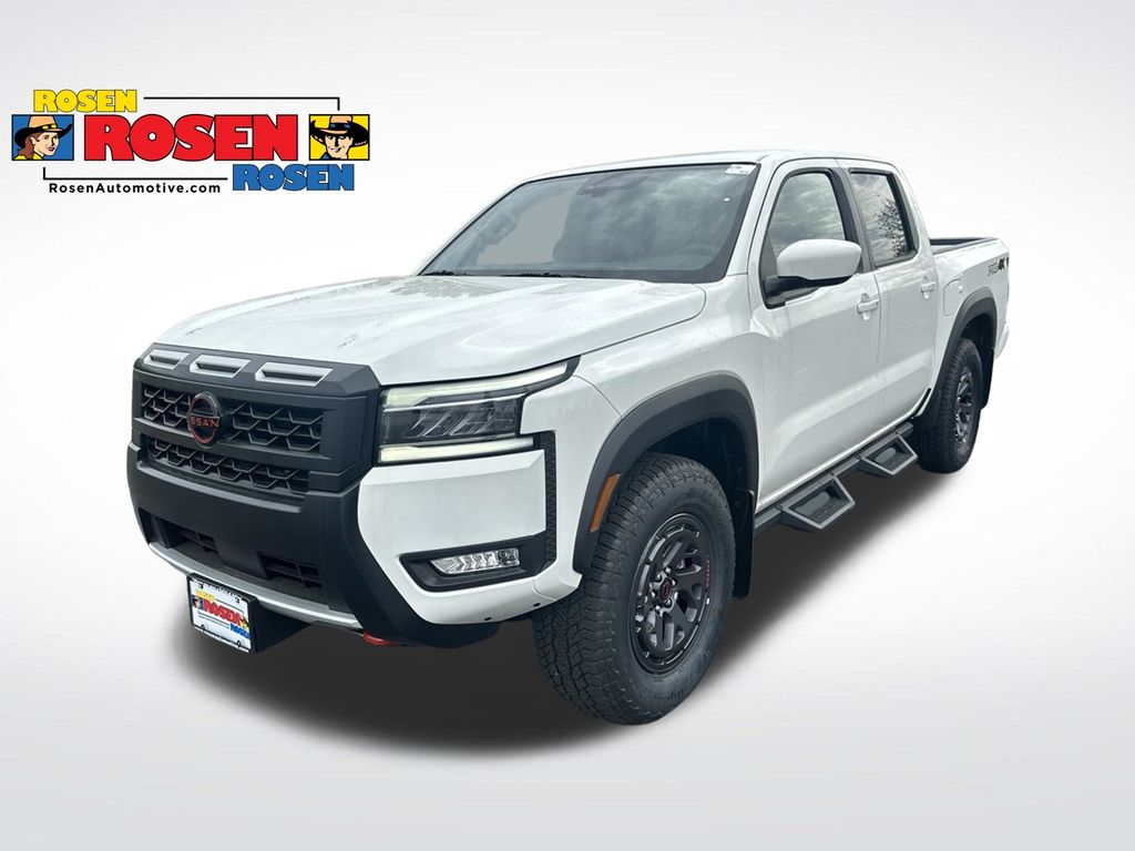 4WD, ABS brakes, Alloy wheels, AM/FM radio: SiriusXM, Automatic temperature control, Blind Spot Warning, Electronic Stability Control, Essentials Kit, Fully automatic headlights, Mud Flap Accessory, Power door mirrors, Power driver seat, Power steering, Power windows, PRO Embroidered Premium Cloth Seat Trim, Remote Engine Starter, Remote Engine Starter Accessory, Remote keyless entry, Speed control, Split folding rear seat, Steering wheel mounted audio controls, Telescoping steering wheel, Tilt steering wheel, Traction control, Trip computer, USB Charging Cable Kit, Variably intermittent wipers. 2025 Nissan Frontier PRO-4X