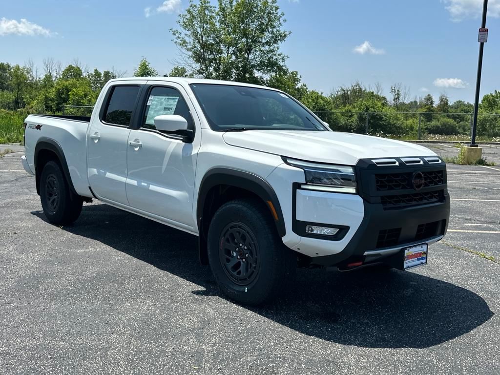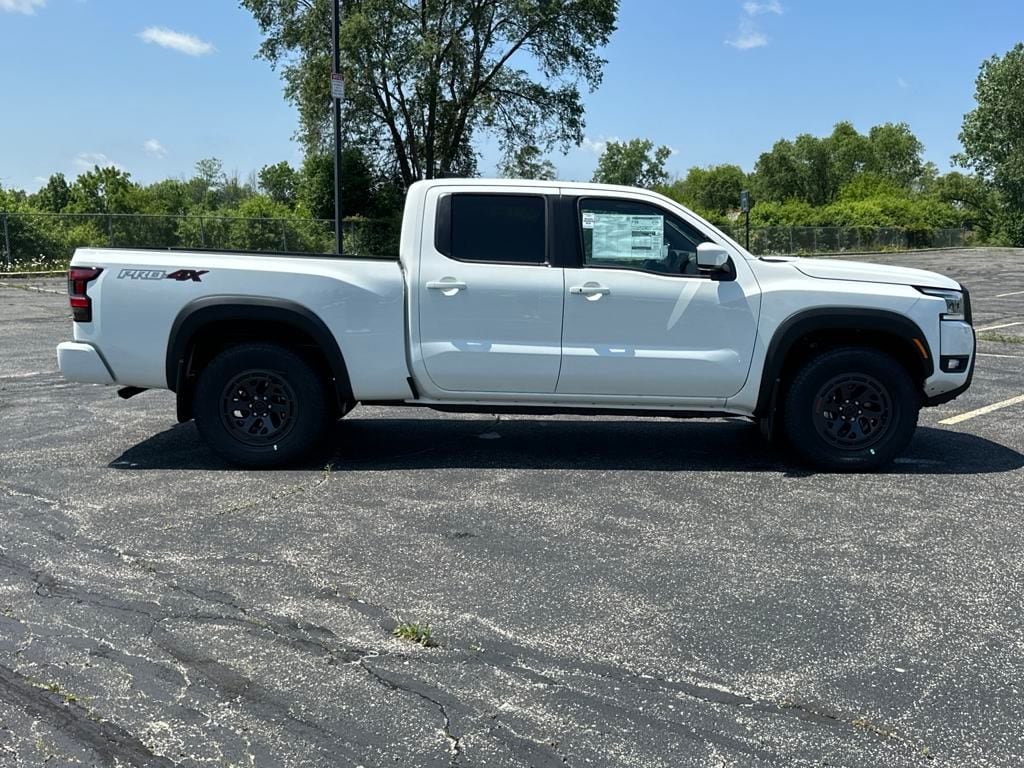 Here's why the 2025 Nissan Frontier Pro4X Crew Cab is a strong choice for off-road enthusiasts and everyday drivers alike: 1. OffRoad Ready Right from the Factory Includes Bilstein offroad shocks, electronic locking rear differential, skid plates, and all-terrain tires, giving you serious weekend adventure chops without aftermarket upgrades. 3 . Built-in Intelligent Around View Monitor with OffRoad Mode engages in 4LO up to ~12mph, helping you maneuver through rough terrain safely.  Strong & Reliable V6 Powertrain Powered by a smooth 3.8L V6 with 310hp and 281lb-ft, paired to a 9-speed automatic giving balanced mid-size pickup. Maintains the robustness of a naturally aspirated engine no turbo known for long-term reliability.  Practical Towing & Payload Capacity Can tow up to 7,150 lbs and haul up to 1,220 lbs payload, exceptional for a midsize offroader. Durable fully boxed ladder frame and strong suspension mean this truck is built for both work and play.  Refined Interior & Tech Upgrades Crew Cab layout offers room for five and extends the bed to 6 feet, a rare and very useful combo. Facing a new 12.3 touchscreen, wireless Apple CarPlay/Android Auto, surround-view camera, plus standard Nissan Safety Shield 360 (AEB, blind-spot, adaptive cruise, etc.)  5. Steady Ride & Ease of Use Many owners report a smooth, quiet ride with controls and gear thoughtfully placed, making it one of the easiest trucks to live with every day . Standard physical knobs and intuitive layout built for use with gloves adds to its practicality. 6. Competitive Pricing Pro4X Crew Cab long-bed starts around $42,270 MSRP + $1,510 destination positioning it well below top-tier off-road trucks in value. Undercuts rivals like the Tacoma or Ranger in pricing while offering full factory off-road gear a serious value proposition.  Final Take The 2025 Nissan Frontier Pro4X Crew Cab hits the sweet spot for those wanting a factory-tuned, rugged off-road truck that's also comfortable and practical for daily life all at a compelling price. It gives enthusiasts low-range 4WD, locking differential, advanced off-road tech, robust performance, and solid towing all without needing to load up aftermarket parts. Ideal if you want: ready-for-adventure capability, a reliable V6, crew cab comfort + long bed, modern tech, and excellent value. Let me know if you'd like a trim comparison, regional pricing here in Chicago, or finance tips!, 4WD. 2025 Nissan Frontier PRO-4X