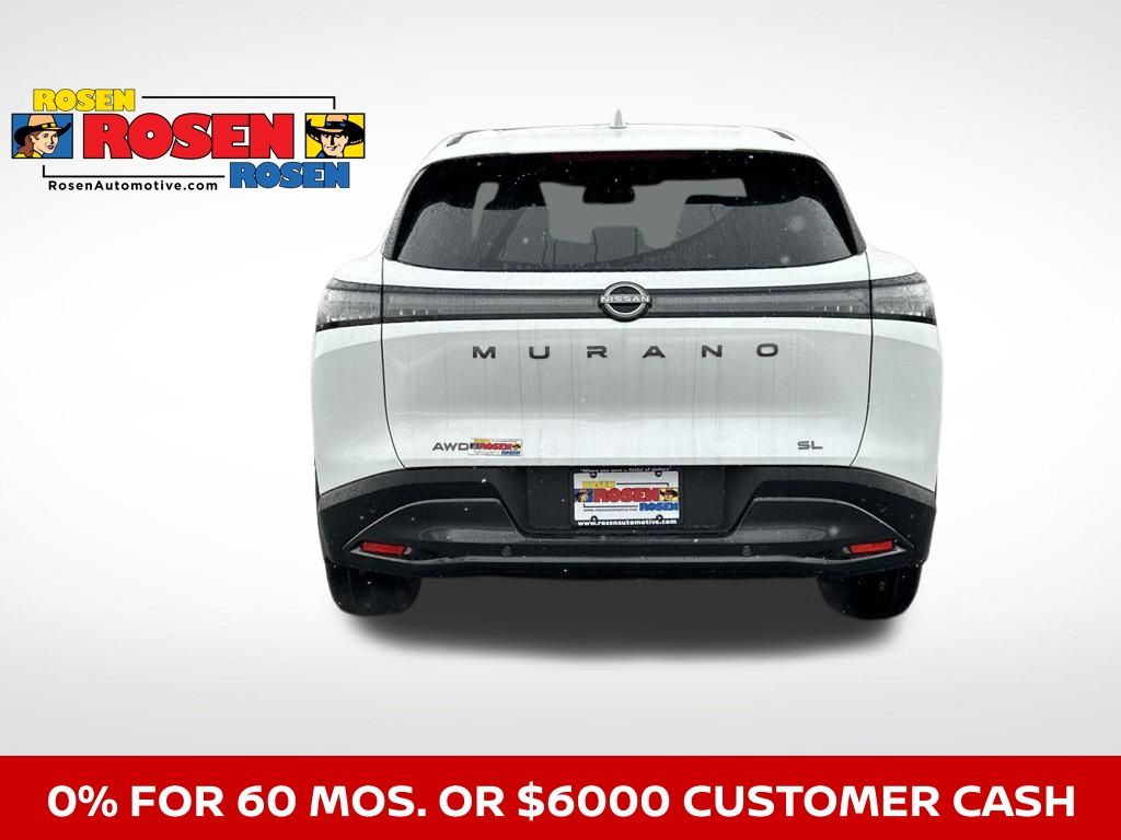 The 2025 Nissan Murano SL AWD is a premium midsize SUV designed for comfort, technology, and all-weather capability. If you're considering one, here are the top reasons why it might be the right choice: Top Reasons to Buy the 2025 Nissan Murano SL AWD 1 Premium & Comfortable Interior Leather-Appointed Seats High-end materials for a refined feel. Heated Front & Rear Seats Adds extra comfort in cold weather. Power-Adjustable Front Seats with Memory Customizable support for long drives. Available Panoramic Moonroof Provides an open and airy feel inside the cabin. 2 Smooth V6 Performance with AWD Capability 3.5L V6 Engine Generates 260 hp & 240 lb-ft of torque for a powerful, refined ride. Intelligent AWD System Enhances traction on rainy, snowy, and uneven roads. Xtronic CVT Transmission Delivers smooth acceleration and decent fuel efficiency. 3 Advanced Technology & Infotainment 8-inch Touchscreen Display Features Apple CarPlay & Android Auto for seamless smartphone integration. Bose Premium 11-Speaker Audio System Delivers immersive sound quality. Built-In Navigation System Provides real-time traffic updates and directions. Wireless Charging & USB Ports Keeps all devices powered on the go. 4 Nissan Safety Shield 360 & Driver Assistance ProPILOT Assist Offers semi-autonomous driving assistance on highways. Intelligent Around View Monitor (360 Camera) Helps with parking in tight spaces. Blind Spot Warning & Lane Departure Warning Keeps you aware of nearby vehicles. Rear Automatic Braking & Rear Cross-Traffic Alert Enhances safety when reversing. 5 Stylish & Comfortable for Everyday Use Bold Exterior Design Features sleek LED headlights and chrome accents. Spacious & Quiet Cabin Offers generous legroom and premium materials. Smooth Ride Quality Ideal for long-distance cruising and daily commutes., 9-Speed Automatic, AWD, ABS brakes, Alloy wheels, AM/FM radio: SiriusXM w/360L, Automatic temperature control, Brake assist, Carpeted Floor & Cargo Mats, Electronic Stability Control, Front dual zone A/C, Fully automatic headlights, Grained Splash Guards, Heated door mirrors, Heated front seats, Power door mirrors, Power driver seat, Power Liftgate, Power steering, Power windows, Rear window wiper, Remote keyless entry, Security system, Speed control, Split folding rear seat, Steering wheel mounted audio controls, Telescoping steering wheel, Tilt steering wheel, Traction control, Trip computer, Variably intermittent wipers. 21/27 City/Highway MPG 2025 Nissan Murano SL