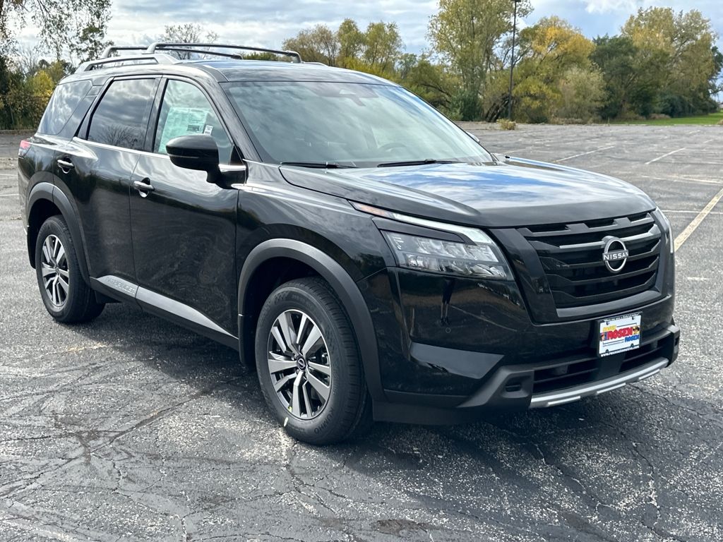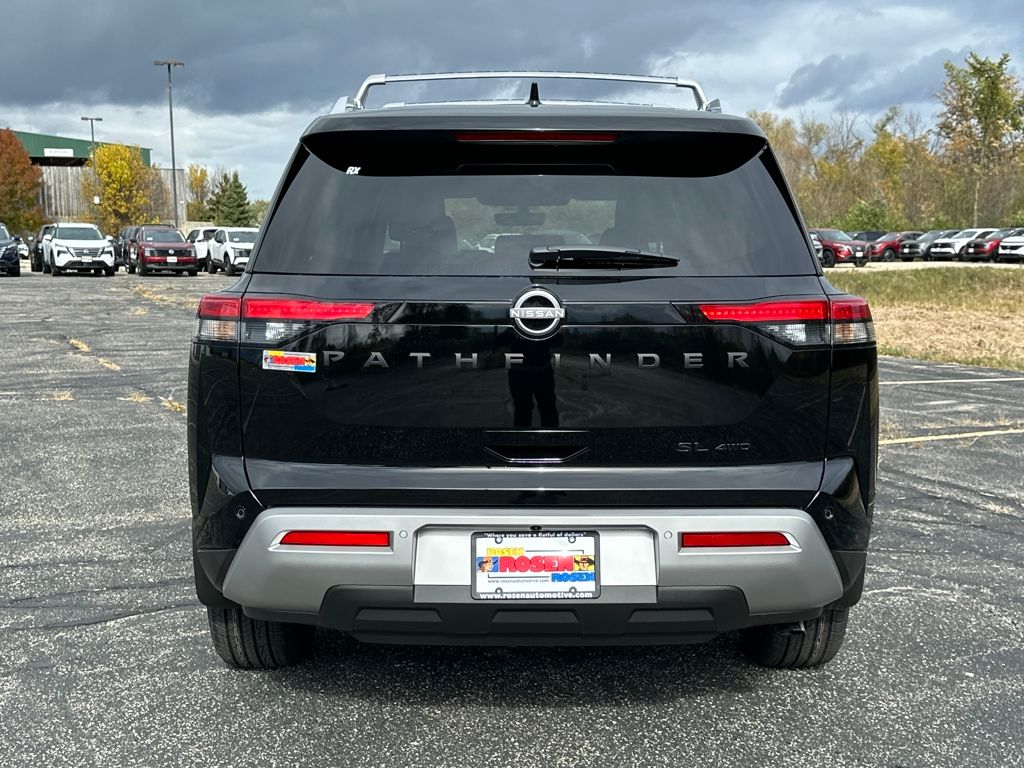 4WD, ABS brakes, Alloy wheels, AM/FM radio: SiriusXM, Automatic temperature control, Black Appearance Package, Black Grille, Black Liftgate Emblems, Cross Bars, Electronic Stability Control, Exterior Parking Camera Rear, Fully automatic headlights, Heated door mirrors, Heated front seats, Leather-Appointed Seating Surfaces, Power door mirrors, Power driver seat, Power Liftgate, Power steering, Power windows, Rear air conditioning, Rear window wiper, Remote keyless entry, Security system, Speed control, Split folding rear seat, Steering wheel mounted audio controls, Telescoping steering wheel, Tilt steering wheel, Traction control, Trip computer, Variably intermittent wipers. 21/27 City/Highway MPG 2025 Nissan Pathfinder SL