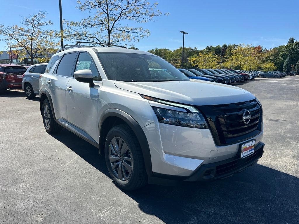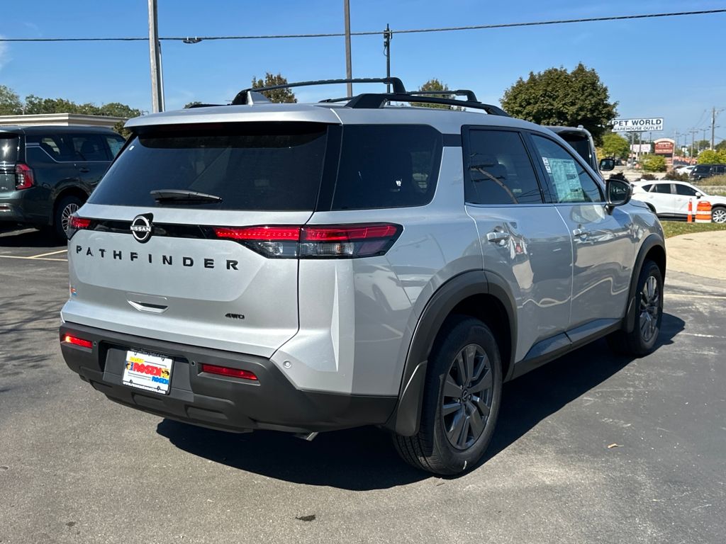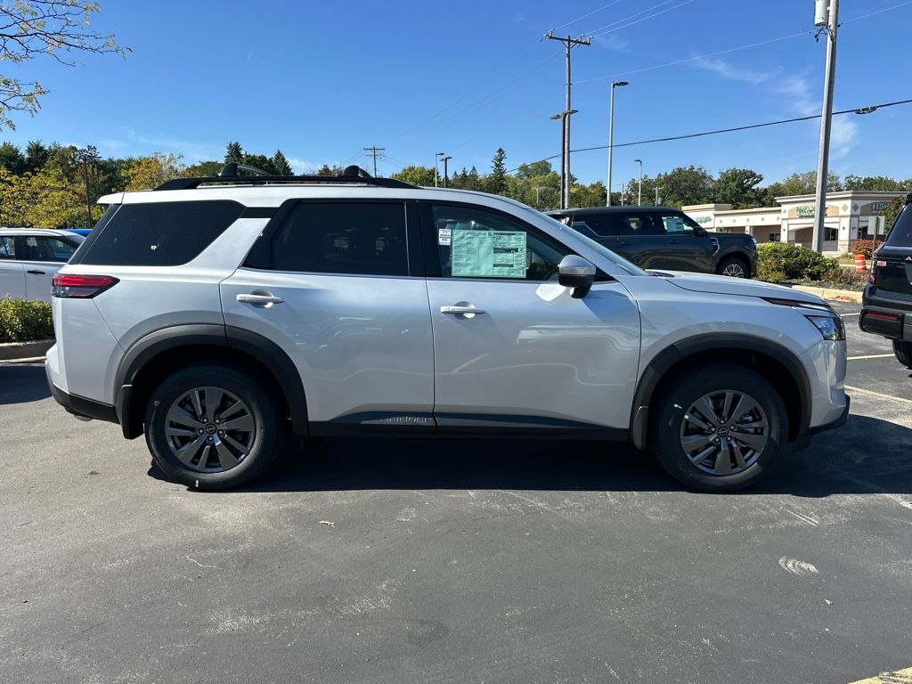 4WD, ABS brakes, Alloy wheels, AM/FM radio: SiriusXM, Automatic temperature control, Bench Seat Carpeted Floor Mats (Set of 4), Black Appearance Package, Black Grille, Black Liftgate Emblems, Cross Bars, Electronic Stability Control, Fully automatic headlights, NissanConnect featuring Apple CarPlay and Android Auto, Power door mirrors, Power driver seat, Power steering, Power windows, Rear air conditioning, Rear Parking Sensors, Rear window wiper, Remote keyless entry, Security system, Speed control, Split folding rear seat, Steering wheel mounted audio controls, Telescoping steering wheel, Tilt steering wheel, Traction control, Trip computer, Variably intermittent wipers. 21/27 City/Highway MPG 2025 Nissan Pathfinder SV