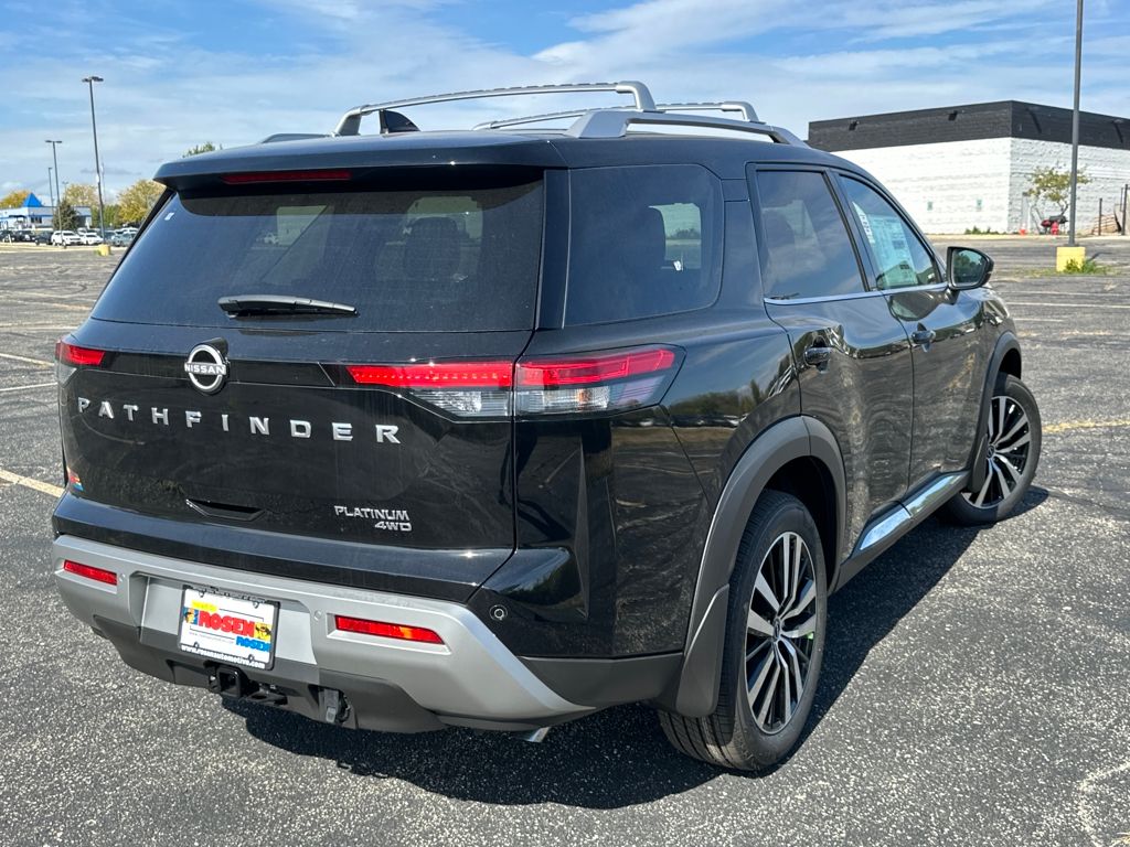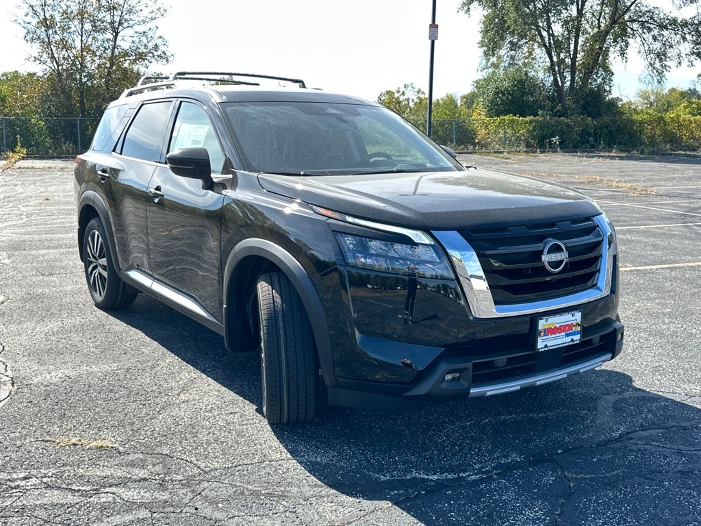 4WD, ABS brakes, Alloy wheels, Automatic temperature control, Bose Premium Audio System, Cargo Area Protector, Cargo Net, Cargo Package, Cross Bars, Exterior Parking Camera Rear, First Aid, Fully automatic headlights, Heated door mirrors, Heated front seats, Memory seat, NissanConnect featuring Apple CarPlay and Android Auto, Power door mirrors, Power driver seat, Power Liftgate, Power moonroof, Power steering, Power windows, Rear air conditioning, Rear window wiper, Remote keyless entry, Security system, Semi-Aniline Leather-Appointed Seating Surfaces, Speed control, Split folding rear seat, Steering wheel memory, Steering wheel mounted audio controls, Telescoping steering wheel, Tilt steering wheel, Traction control, Trip computer, Variably intermittent wipers, Ventilated front seats. 2025 Nissan Pathfinder Platinum