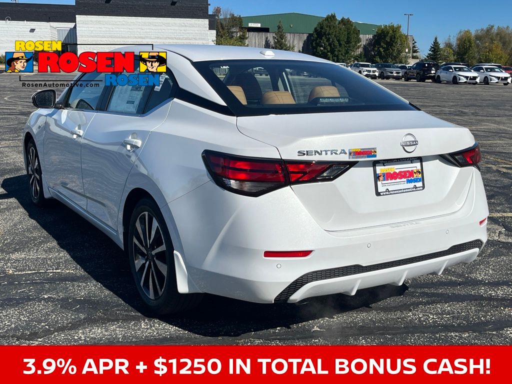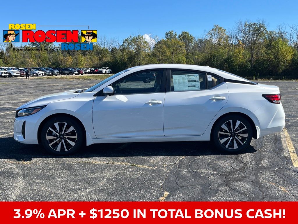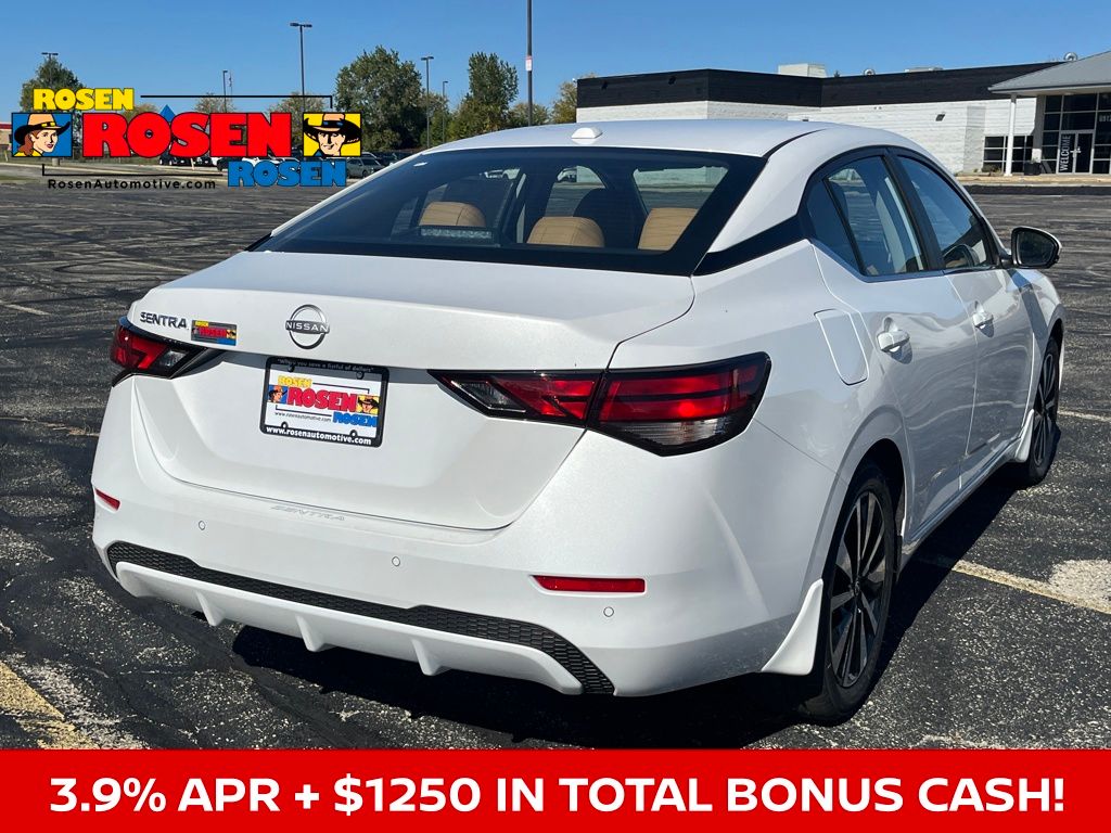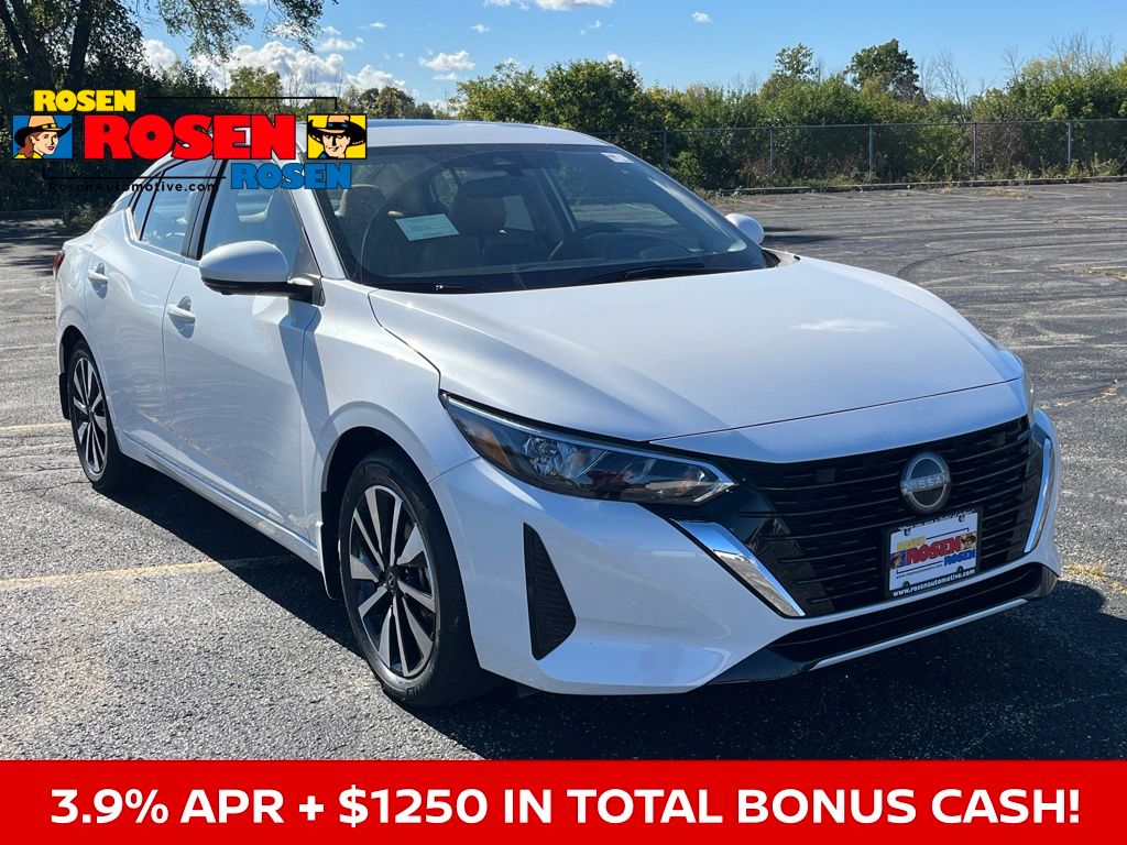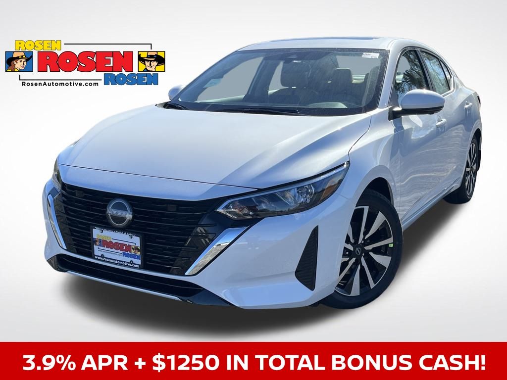 CVT with Xtronic, Sv Premium Leather, 17" Alloy Wheels, 6-Way Power Driver's Seat, ABS brakes, All-Weather Package, Blind Spot Warning, Body Colored Splash Guards (4-Piece), Clear Rear Bumper Protector, Door Sill Plates, Dual Zone Auto Climate Control, Electronic Stability Control, Fully automatic headlights, Heated Exterior Mirrors, Heated Front Seats, Intelligent Around View Monitor (I-AVM), Leather Shift Knob, Leather-Wrapped Heated Steering Wheel, NissanConnect Services, Power door mirrors, Power steering, Power windows, Quilted Leather Seat Trim, Rear Parking Sensors, Remote Engine Start, Remote keyless entry, Security system, Speed control, Split folding rear seat, Steering wheel mounted audio controls, SV Premium Package, Telescoping steering wheel, Tilt steering wheel, Trip computer, Variably intermittent wipers. 30/40 City/Highway MPG 2025 Nissan Sentra SV