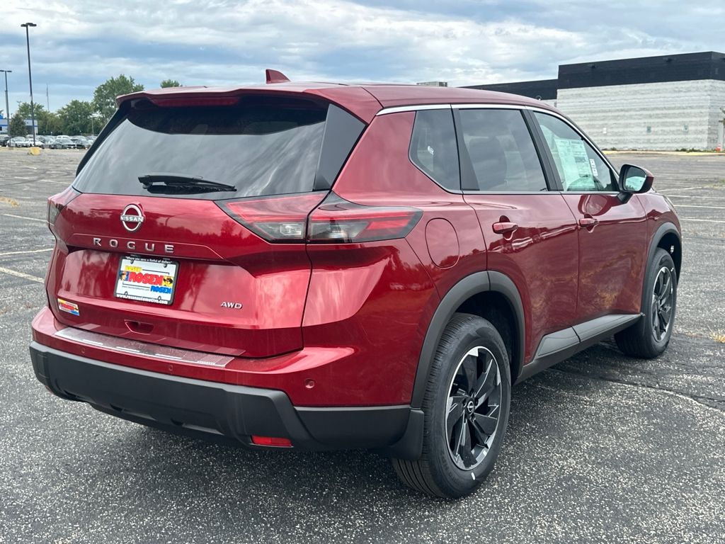 AWD, ABS brakes, Air Conditioning, Alloy wheels, Apple CarPlay/Android Auto, Black Splash Guards (Set of 4) (B92), Chrome Rear Bumper Protector, Cloth Seat Trim w/Patterned Inserts, Electronic Stability Control, First Aid Kit, Floor Mats w/1-Piece Cargo Area Protector, Fully automatic headlights, Power door mirrors, Power driver seat, Power steering, Power windows, Rear window wiper, Remote keyless entry, Speed control, Split folding rear seat, Steering wheel mounted audio controls, Telescoping steering wheel, Tilt steering wheel, Traction control, Trip computer, Variably intermittent wipers. 28/35 City/Highway MPG 2026 Nissan Rogue SV