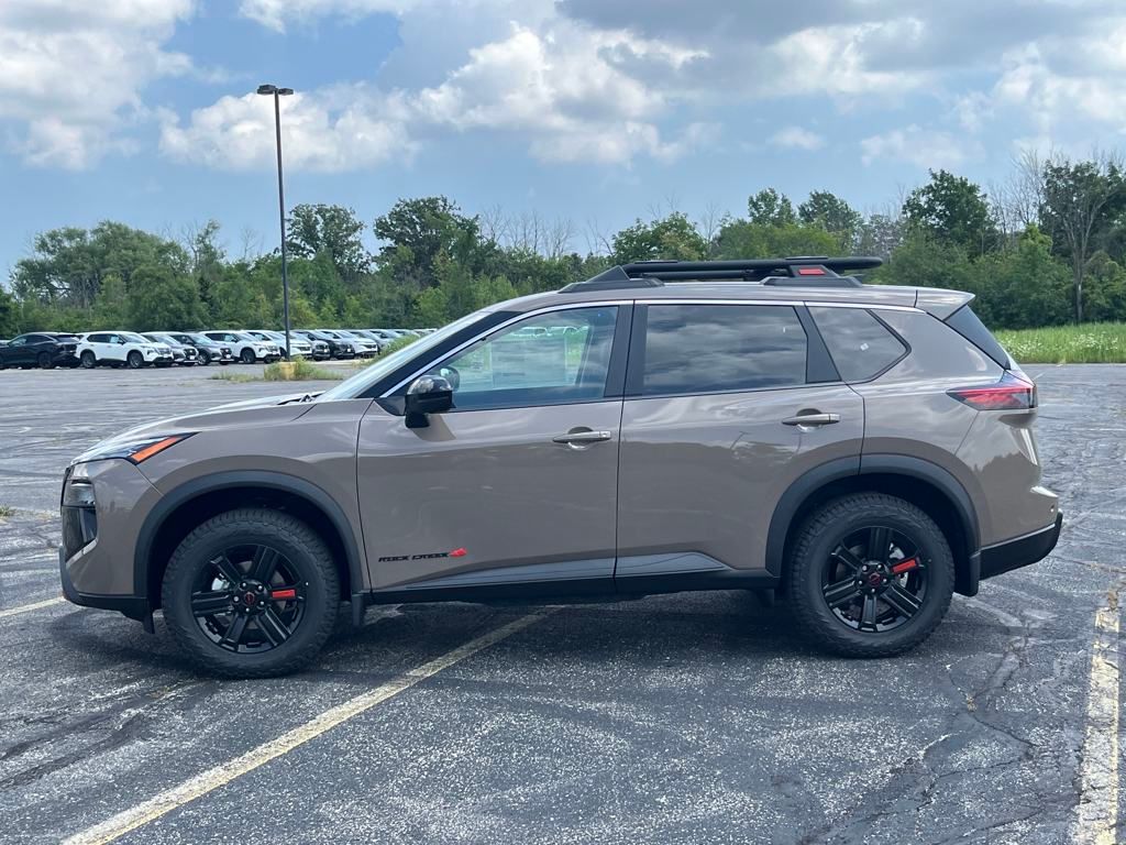 AWD, 4-Way Power Passenger Seat, ABS brakes, Alloy wheels, Apple CarPlay/Android Auto, Auto-Dimming Inside Mirror, Automatic temperature control, Black Splash Guards (Set of 4), Electronic Stability Control, Front dual zone A/C, Fully automatic headlights, Heated door mirrors, Heated front seats, Heated Steering Wheel, Interior LED Accent Lighting, Leatherette & Ballistic Nylon Seating, Memory Driver Seat & Outside Mirrors, Motion-Activated Power Liftgate, Power door mirrors, Power driver seat, Power Liftgate, Power steering, Power windows, Rear window wiper, Remote keyless entry, Reverse Tilt-Down Outside Mirrors, Rock Creek Premium Package, Speed control, Split folding rear seat, Steering wheel mounted audio controls, Telescoping steering wheel, Tilt steering wheel, Traction control, Trip computer, Variably intermittent wipers, Wireless Charging Pad. 27/32 City/Highway MPG 2026 Nissan Rogue Rock Creek