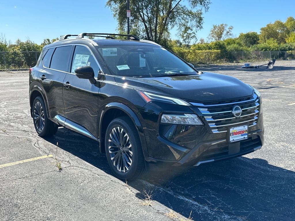 AWD, ABS brakes, Alloy wheels, Auto-dimming Rear-View mirror, Automatic temperature control, Black Splash Guards (Set of 4), Bose Premium Audio System, Chrome Rear Bumper Protector, Electronic Stability Control, First Aid Kit, Floor Mats w/2-Piece Cargo Area Protector, Fully automatic headlights, Head-Up Display, Heated door mirrors, Heated front seats, Heated Rear Seats, Memory seat, Motion-Activated Power Liftgate, Platinum Premium Package, Power door mirrors, Power driver seat, Power Liftgate, Power moonroof, Power steering, Power windows, Quilted Semi-Aniline Leather-Appointed Seat Trim, Rear window wiper, Remote keyless entry, Security system, Speed control, Split folding rear seat, Steering wheel mounted audio controls, Telescoping steering wheel, Tilt steering wheel, Traction control, Tri-Zone Automatic Temperature Control, Trip computer, Variably intermittent wipers, Wireless Apple CarPlay/Wireless Android Auto. 28/34 City/Highway MPG 2026 Nissan Rogue Platinum